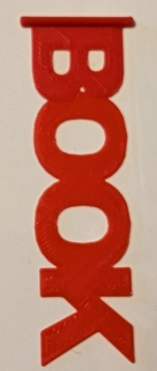 Add a touch of whimsical style to your reading experience with this charming 3D printed bookmark. Featuring the word “BOOK” in bold, playful lettering, this unique bookmark is the perfect accessory for book lovers. Designed with a functional tab at the top, this bookmark easily slides between the pages of your book, keeping your place securely without damaging delicate pages. The raised tab makes it easy to quickly find your spot, even when your book is closed.  Crafted from durable, high-quality PLA plastic, this 3D printed bookmark is built to last. The vibrant, full-color printing ensures the “BOOK” design stays crisp and clear, even after repeated use.